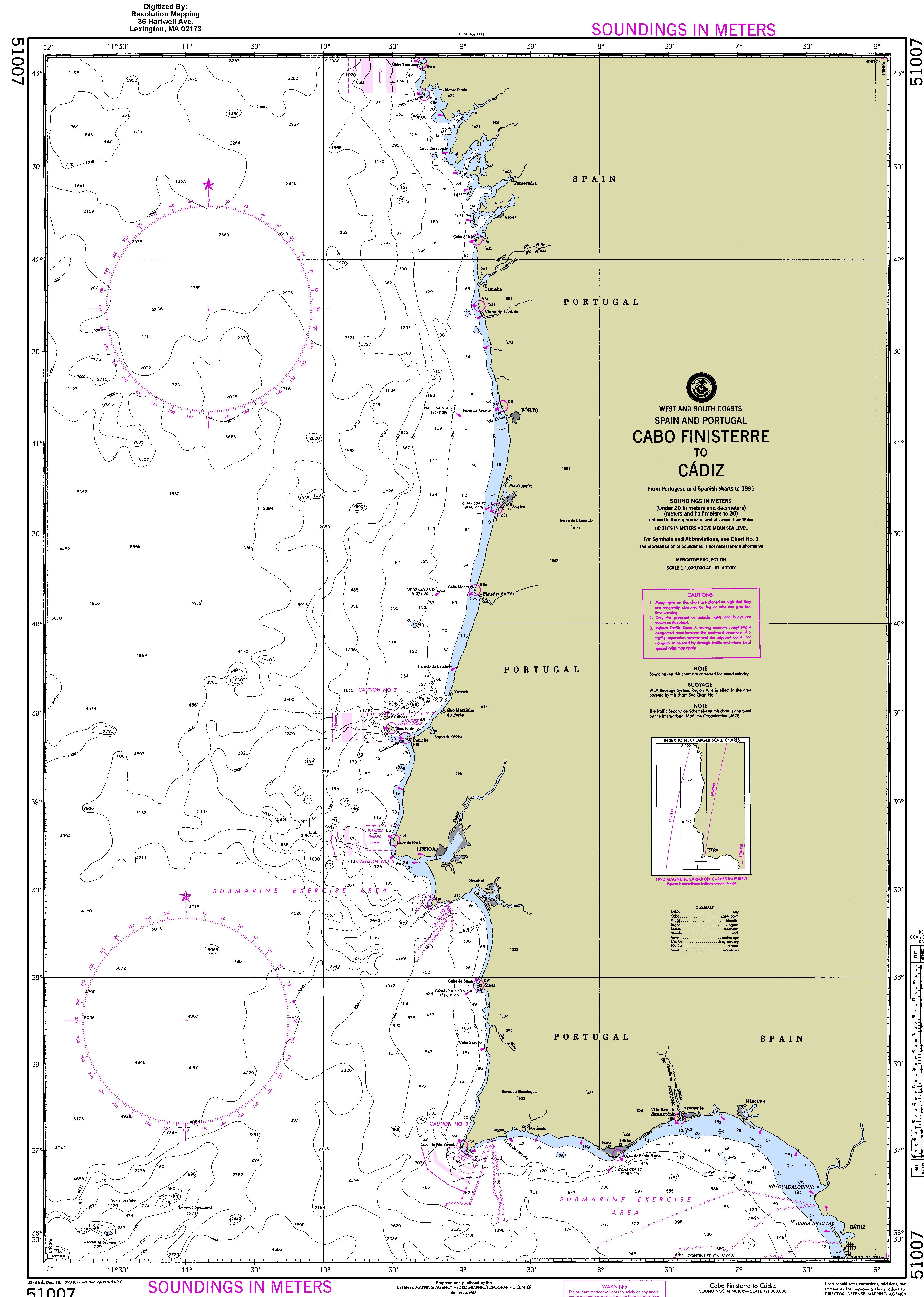 Carte marine du Cap Finistère à Cadiz