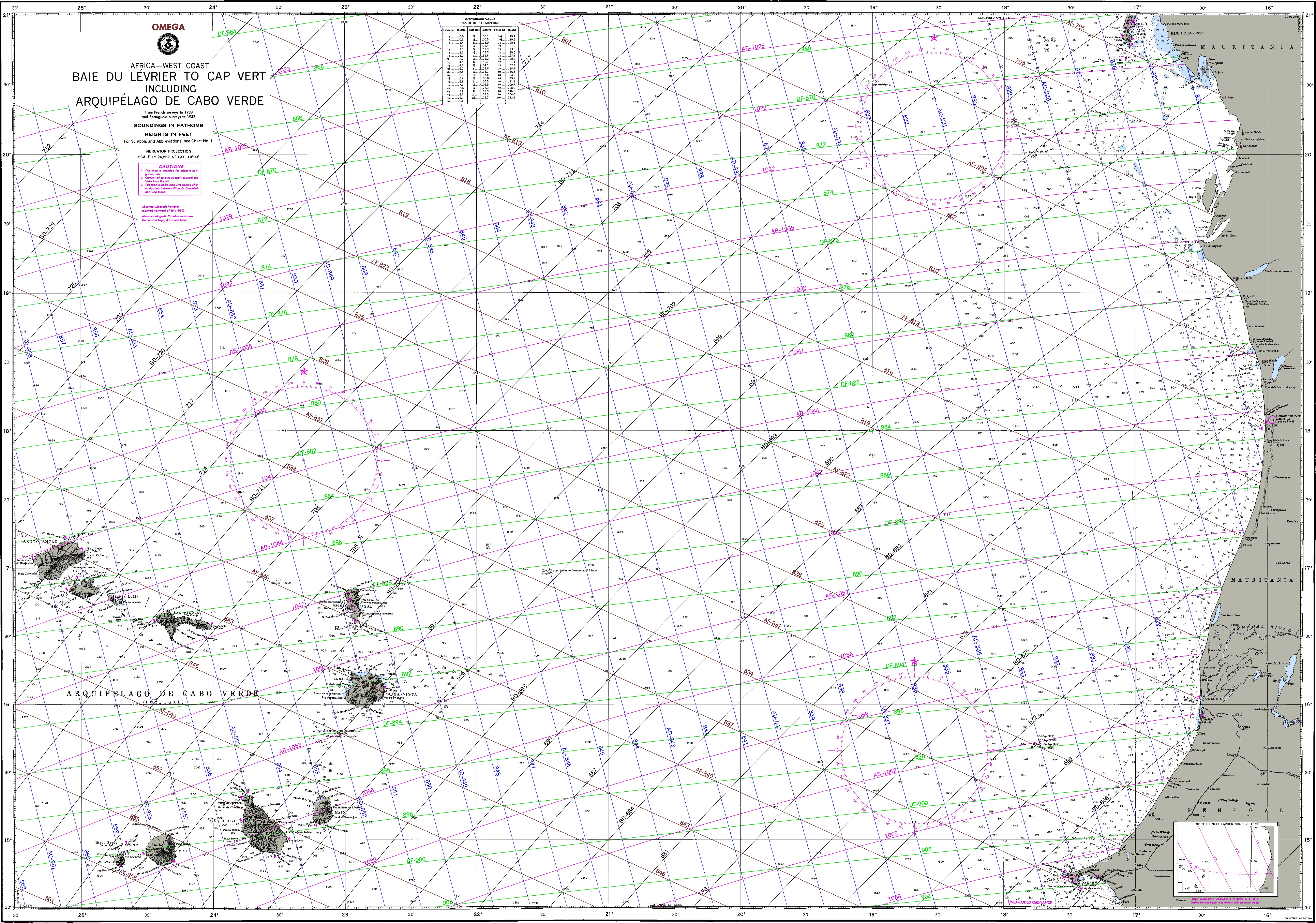 Carte marine de «Baie du Levrier au Cap Vert incluant Arquipelago » Portugal