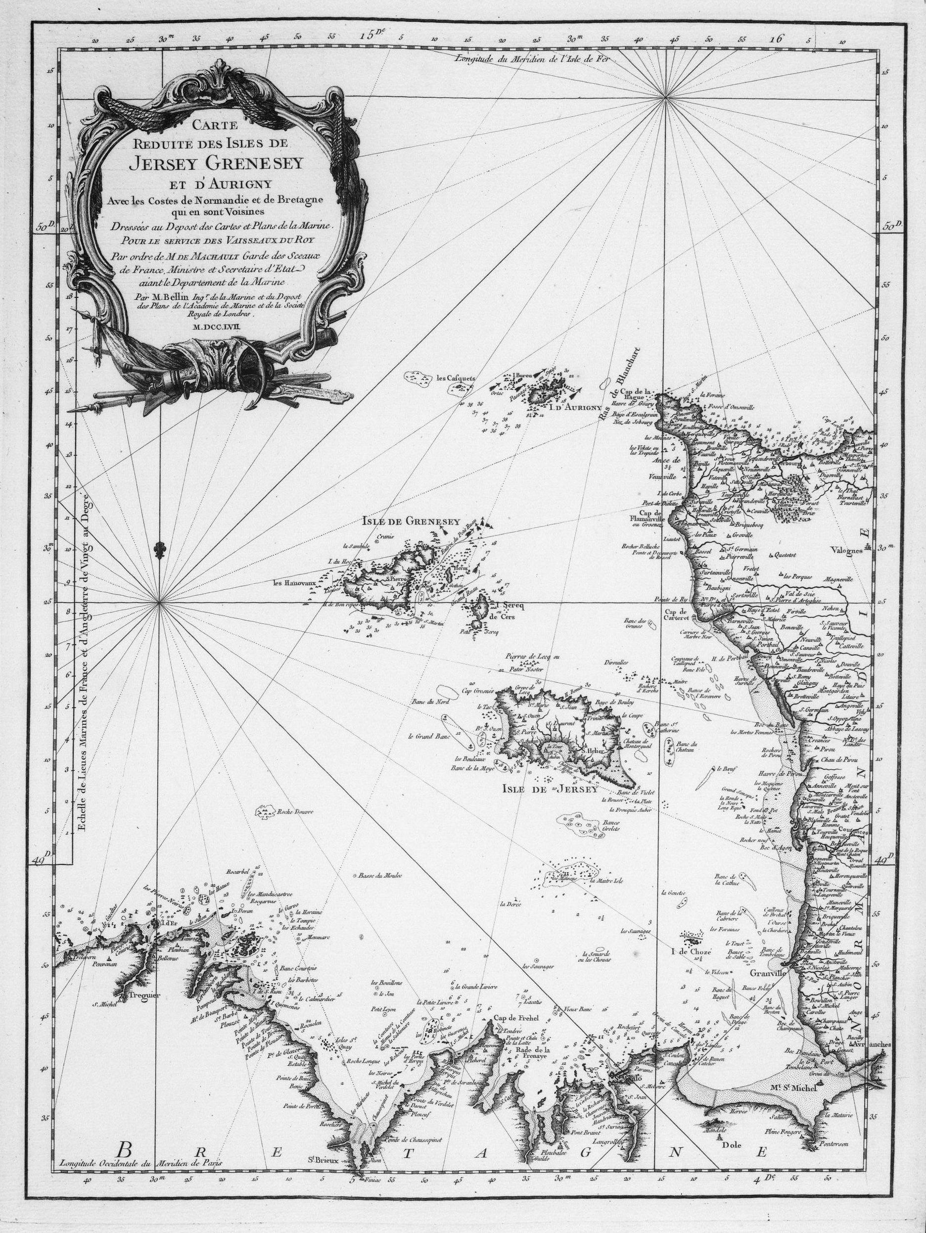 GRATUIT Carte réduite des Isles de Jersey, Grenesey et d'Aurigny avec les costes de Normandie et de Bretagne qui en sont voisines Auteur : Bellin, Jacques-Nicolas (1703-1772) [...]