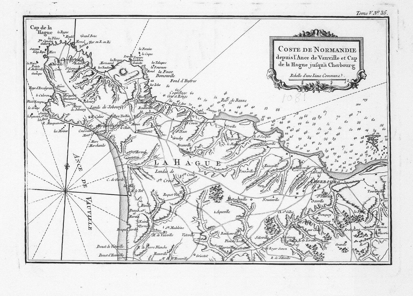 Coste de Normandie depuis l'Ance de Vauville et cap de La Hague jusqu'à Cherbourg.