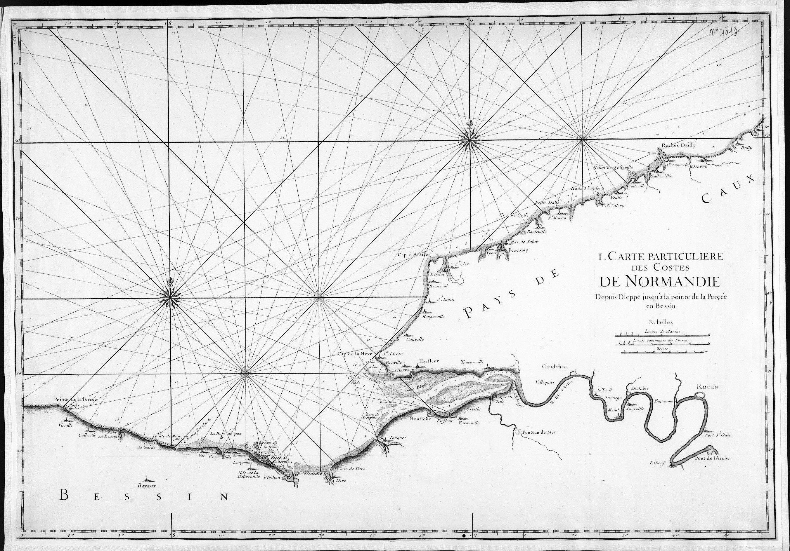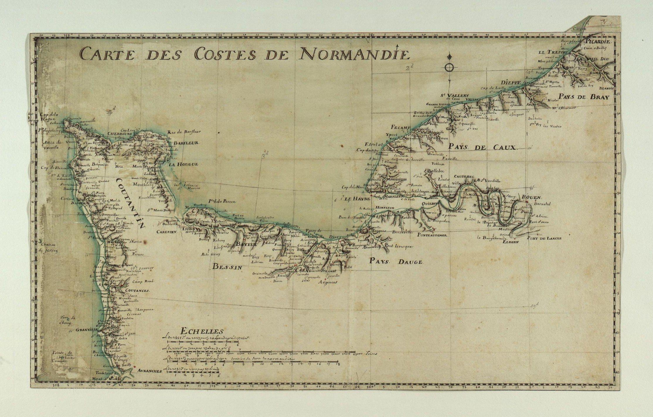 GRATUIT Carte particulière des costes de Normandie depuis Dieppe jusqu'à la pointe de la Percée en Bessin. Auteur : Jean-Baptiste Bourguignon d'Anville (1697-1782) Date : 1753 [...]